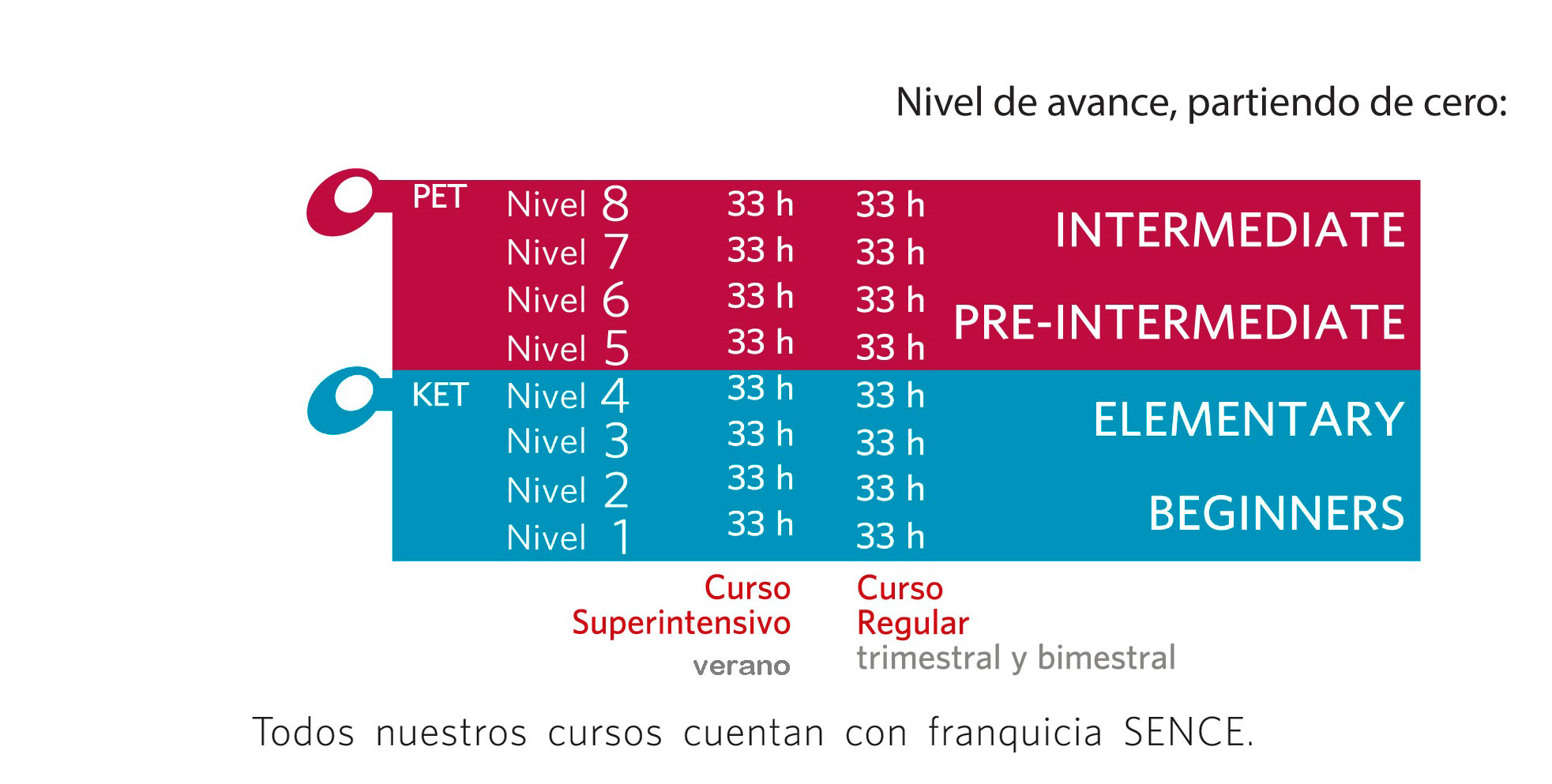 ¿Cómo avanzar en el curso? Después de haber asistido a las clases y completar la fase de aprendizaje es necesario rendir las correspondientes evaluaciones, escritas y orales. En ellas puedes demostrar todo lo que has aprendido y avanzar al siguiente nivel.